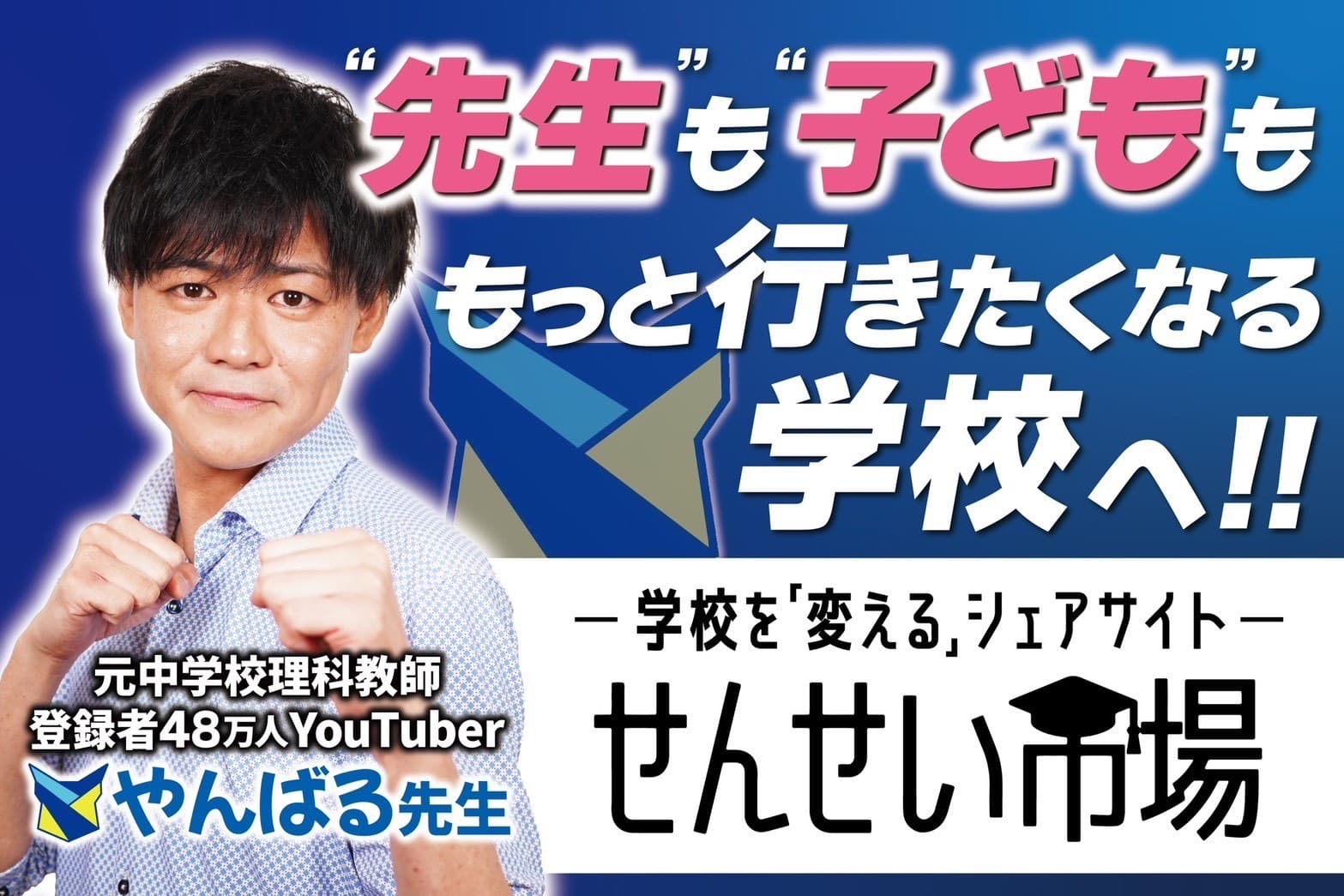 5年間の中学校教員を退職し、株式会社せんせい市場はスタートしました。2022年4月にYouTubeチャンネル「やんばるゼミ」を開設し、今では48万人を超えるチャンネル登録者がいます。先生の経験を活かした先生ならではの視点で、教育課題の解決に取り組むためにやんばるゼミを基盤に、教育アプリの開発や教員向けノウハウシェアサイト「せんせい市場」の運営など、多岐にわたるサービスを展開し続けております。