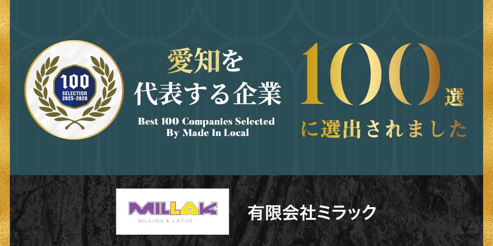金属の精密部品加工を展開している有限会社ミラック(ミラック、愛知県瀬戸市、代表取締役 山田 優)が2025年5月1日からの「愛知を代表する企業100選」に選出されました。