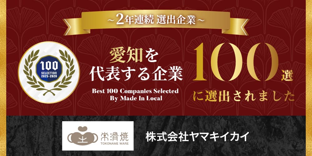 陶磁器販売を展開している株式会社ヤマキイカイ(愛知県常滑市、代表取締役:石田英之)が「愛知を代表する企業100選」に2年目も選出されました。