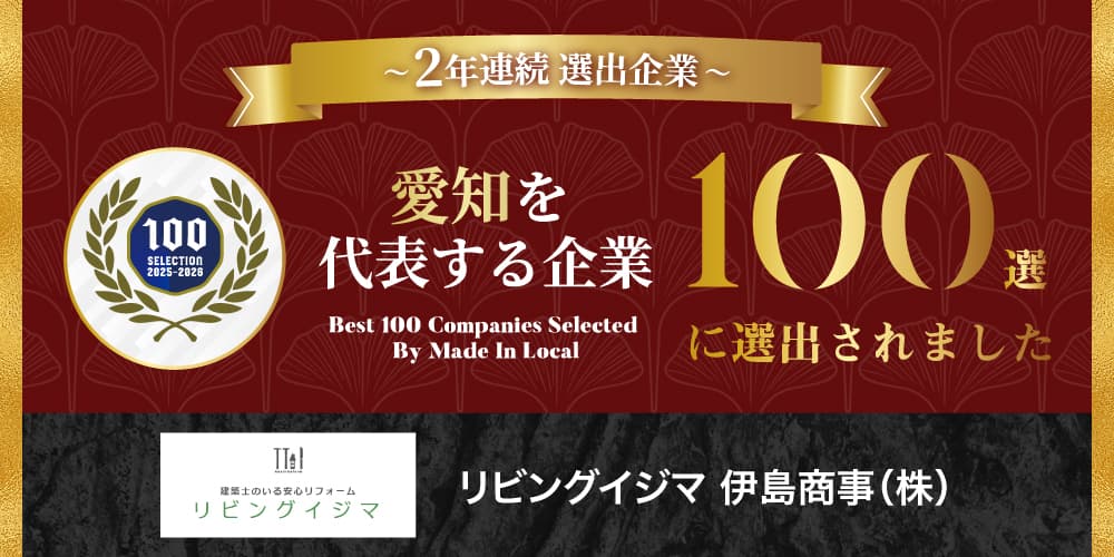 このたび、伊島商事株式会社(リビングイジマ)は「愛知を代表する企業100選」に2年連続で選出いただきました。