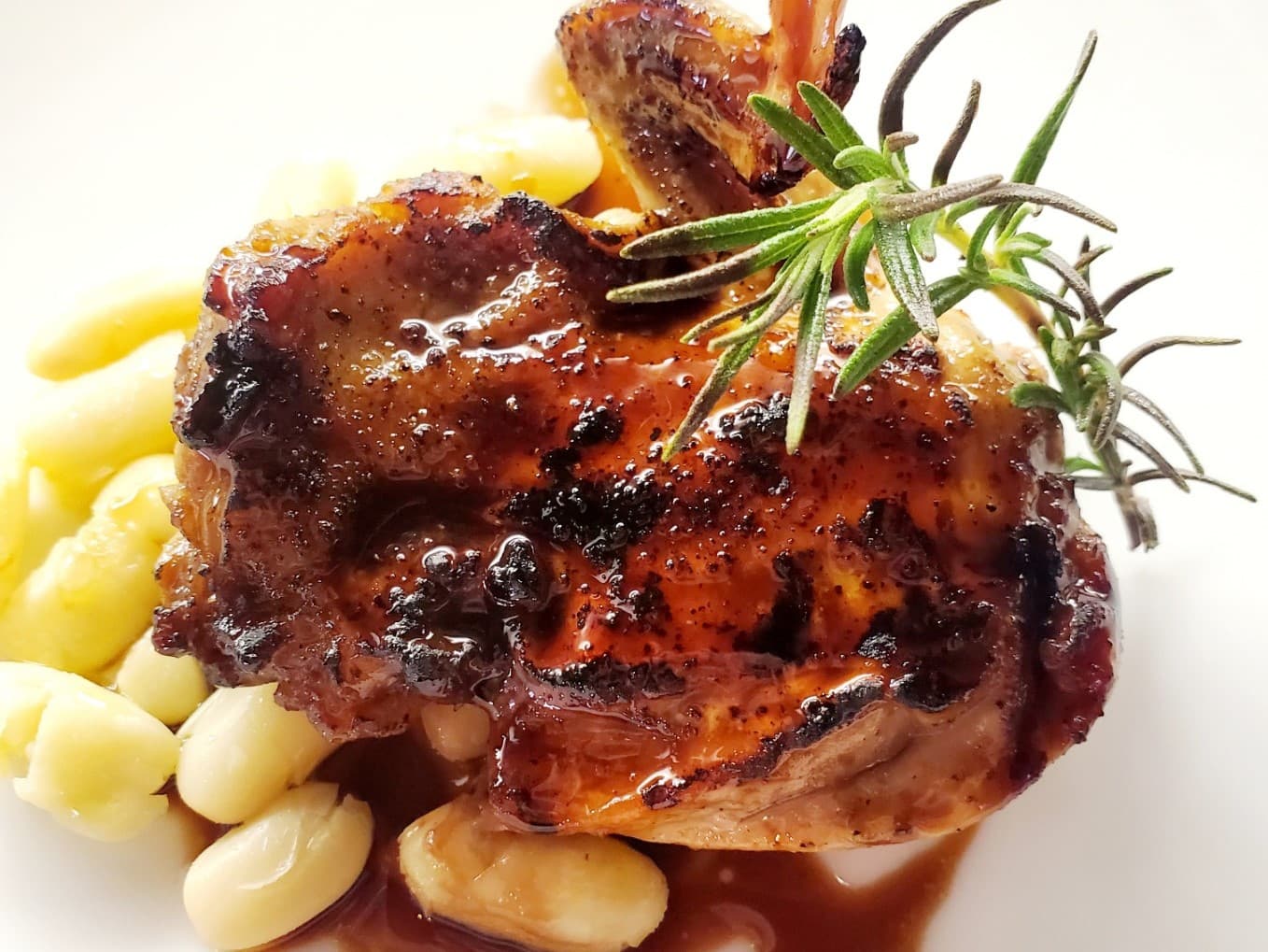 国産ウズラ肉の照り焼き風マルサラワインソースと白いんげん豆