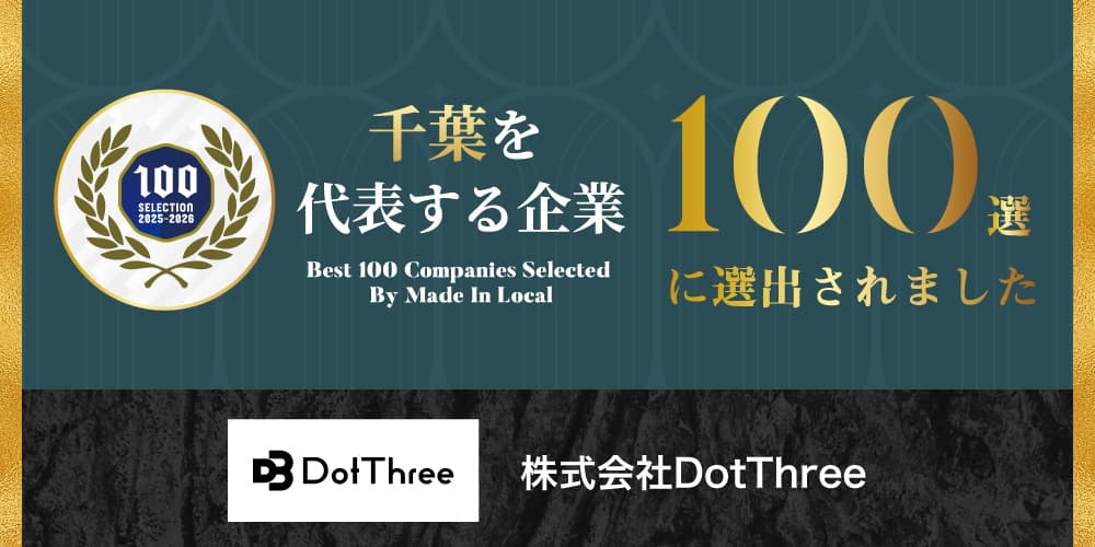 この度、株式会社DotThreeは、地方創生メディア「Made In Local」が主催する「千葉を代表する企業100選」に選出されましたことをご報告いたします。