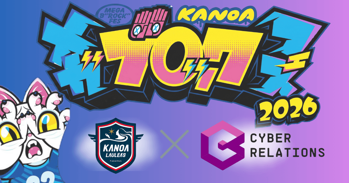 株式会社サイバーリレーションズ(サイバーリレーションズ、所在地:福岡県福岡市、代表取締役:岩下 航大)は、2026年2月14日(土)・15日(日)に北九州市立総合体育館で開催された「KANOA MEGA BROCK FES 2026」にスポンサーとして協賛・参加いたしました。