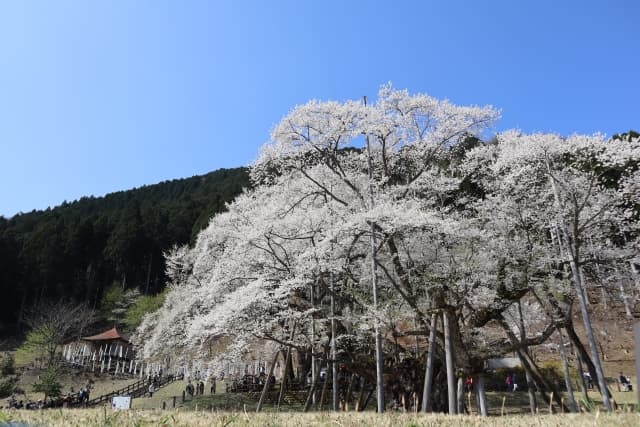 今では、山梨県の山高神代桜・福島県の三春滝桜と並び、日本三大桜のひとつに数えられ、国の天然記念物にも指定されています。