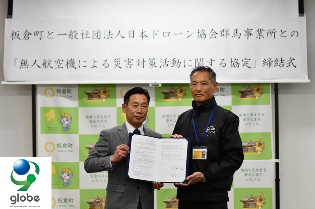 株式会社globeコーポレーションが法人会員を務める日本ドローン協会 群馬事業所(所在地:群馬県前橋市 所長:荒川 智)は2025年2月20日付で、群馬県板倉町と災害対策に関する協定の締結を行いました。