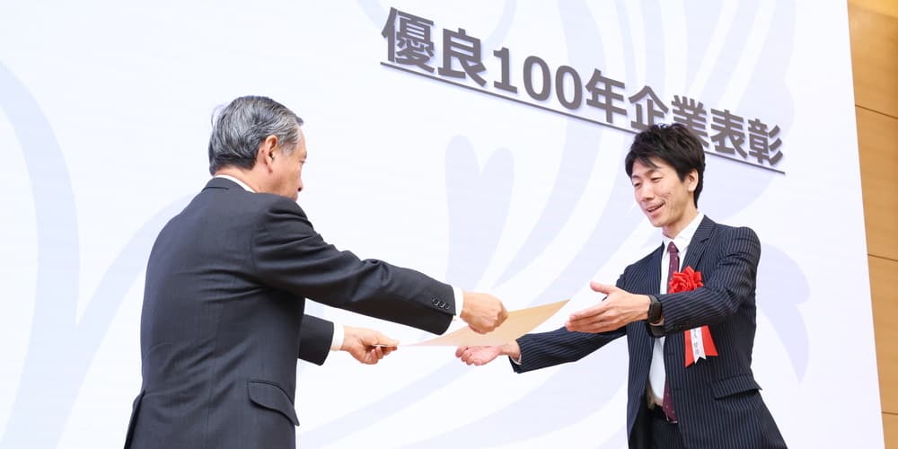 100年企業顕彰は、先達が築いてきた経営モデルを次世代に引き継ぐため、創業者の精神を継承した経営理念のもと革新に挑み、未来ビジョンを持つ創業100年を超える企業を、100年経営の会が表彰するものです。
