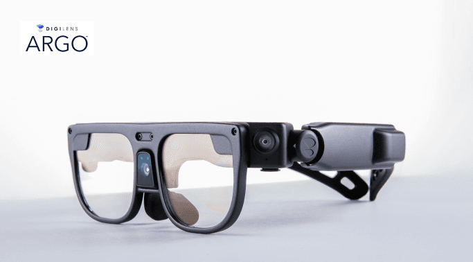 DigiLens社のARGOは、独自のウェーブガイド技術により高輝度・高解像度表示を実現した次世代ARグラスです。軽量かつ堅牢な設計で、IP65の防塵・防水性能、ANSI Z87.1準拠の眼球保護性能、MIL-STD-810G準拠の耐衝撃・耐振動性能を備えています。