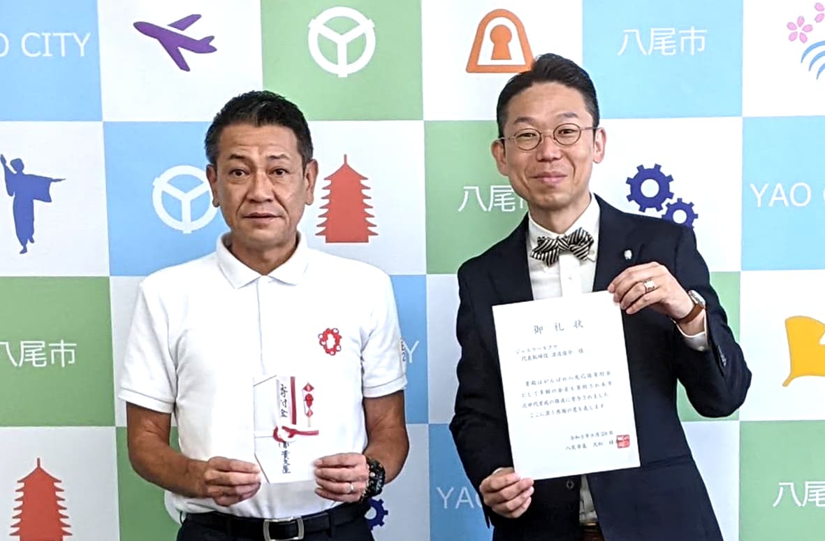 毎年、八尾市役所にて市長へ直接手渡す形で寄付を行っており、地域に根ざした企業として継続的に社会貢献活動を行っています。