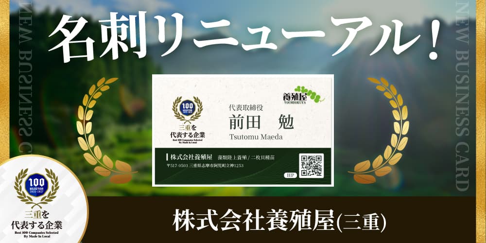 株式会社養殖屋(本社:三重県志摩市、代表取締役:前田勉)は、このたび名刺のデザインを一新いたしました。