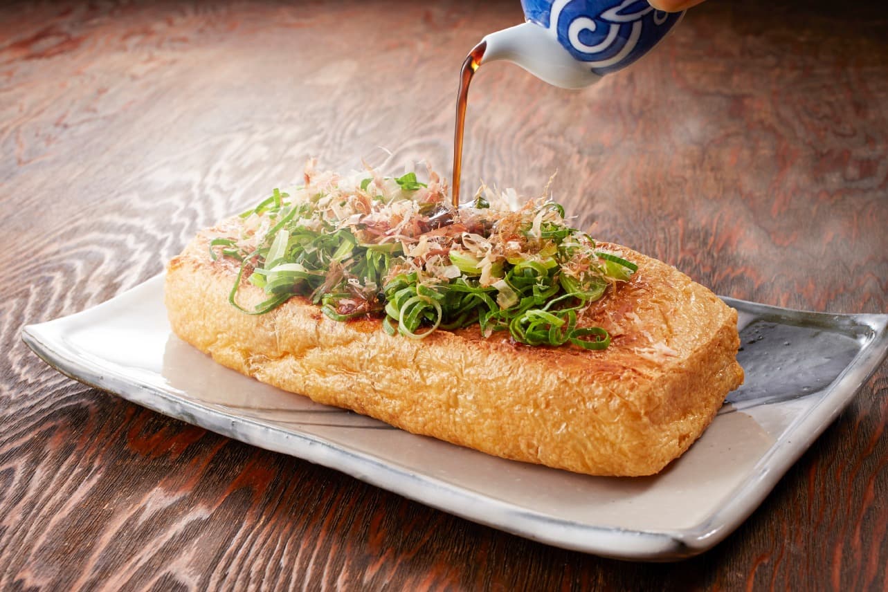 あぶらげの最もシンプルでオーソドックスな食べ方は、ねぎや生姜などの薬味と鰹節を乗せ、醤油をかける食べ方。噛むほどに大豆の旨みが溢れ、あぶらげのおいしさが堪能できるんだとか!もうこれだけでおいしそうです✨