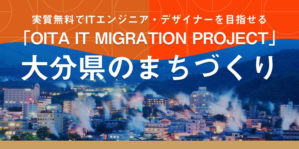 「OITA IT MIGRATION PROJECT」とは大分県からの支援により、県内に移住することでOITA CREATIVE ACADEMY(OCA)のプログラミングやWebデザインに関する講義(※マーケティングコースの場合40万円相当)を無料で受講できる制度です。
