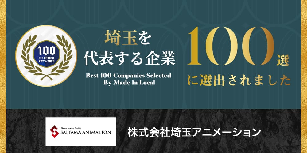日本を代表とするゲームタイトルをはじめ、アニメ・映画などさまざまな媒体のCG映像制作を手がける株式会社埼玉アニメーション(サイタマアニメーション、所在地:埼玉県和光市、代表取締役:金野義德)は2025年8月に「埼玉を代表する企業100選」に選出されました。