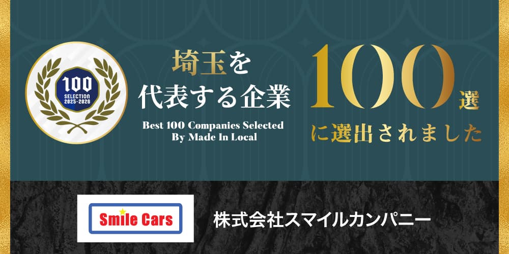無店舗型中古車買取を全国に120店舗展開している株式会社スマイルカンパニー(法人名カナ:スマイルカンパニー、本社:埼玉県川越市、代表取締役:山野俊介)は、2025年9月1日付で『埼玉を代表する企業100選』に選出されました。