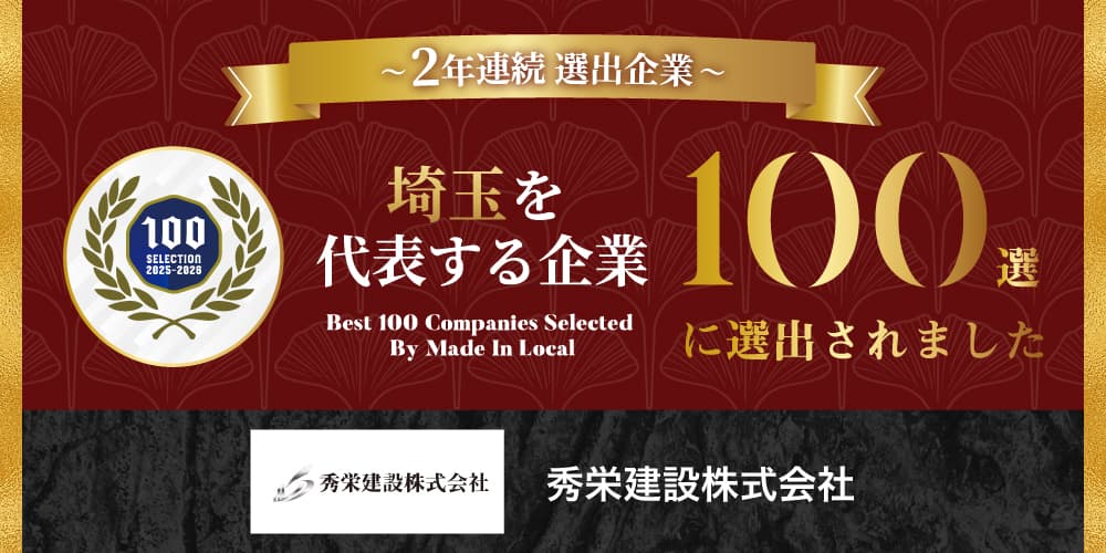 このたび、秀栄建設株式会社は「埼玉を代表する企業100選」に2年連続でご選出いただきました。