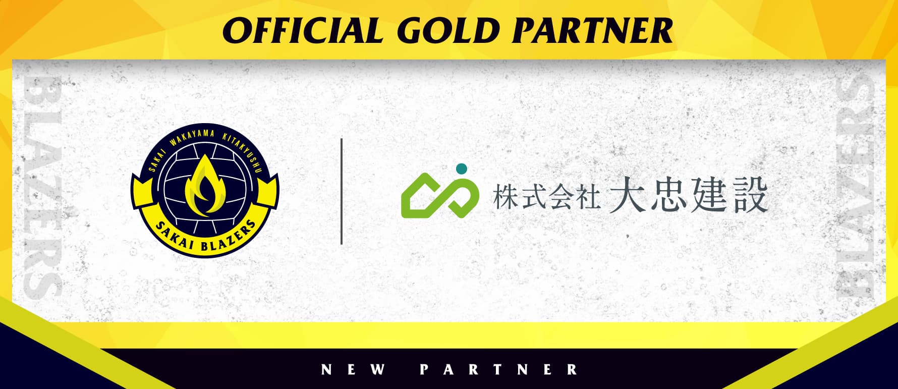 このたび、堺・泉州を代表する企業100選選出企業である、株式会社大忠建設様が、バレーボールSVリーグ・日本製鉄堺ブレイザーズ様とのオフィシャルゴールドパートナー契約を締結いたしましたのでお知らせいたします。