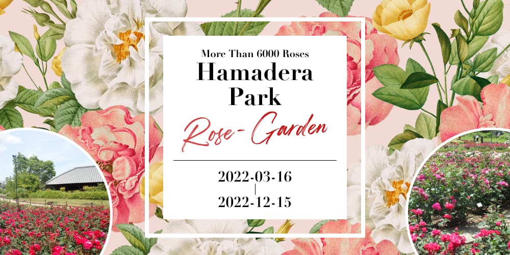 およそ2.5ヘクタールもの広さを誇るばら庭園は、大阪府の「花ふる大阪事業」として平成5年(1993)に完成し、和風の回遊式庭園に見立てた「湖沼・水路の景」「里の景」「山間の景」など、趣ある5つのゾーンと遊歩道、そしてヨーロッパの庭園を思わせる「まちの景」が広がる大変見ごたえのある造りとなっています!