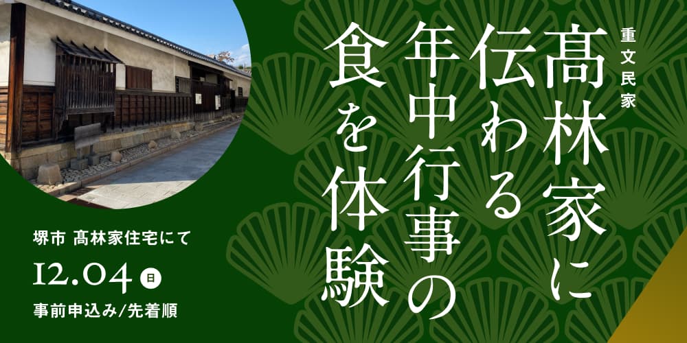 開催日は今週12月4日(日)11:30〜14:00(11:00開場)、場所は大阪・堺市の御廟山古墳のすぐ近くにある「高林家住宅」です。