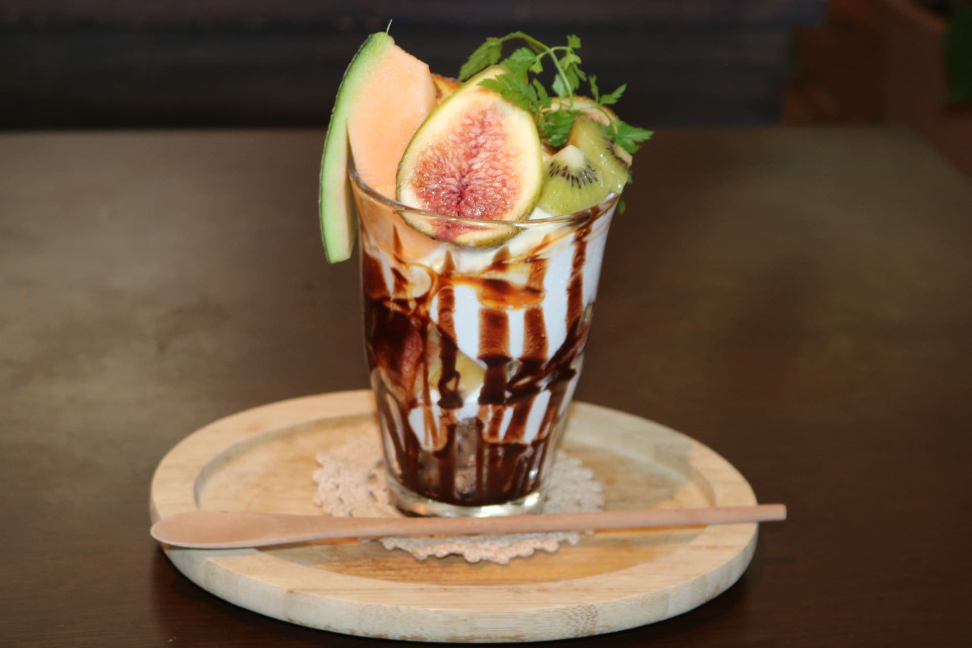 中の層のチョコソースのかけ方がなんともお洒落で、インスタ映えすること間違いないパフェです(^^♪