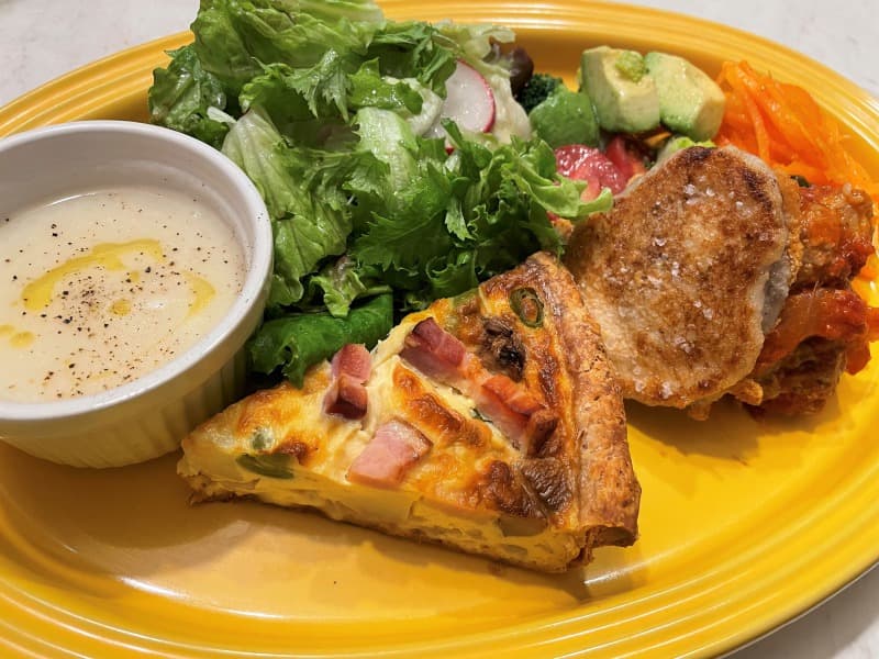 自家製キッシュに旬の野菜をたっぷり使用したデリやスープがワンプレートになったメニューです。