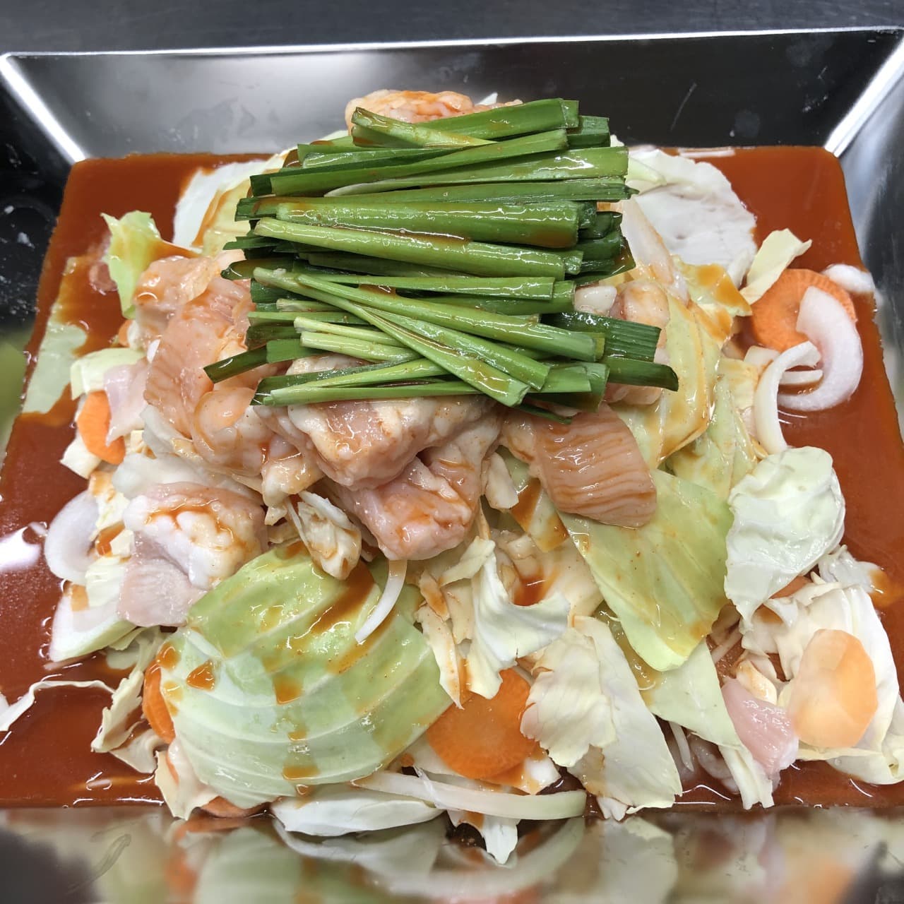 一見もつ鍋のようですが実はこちらは焼き鍋!!