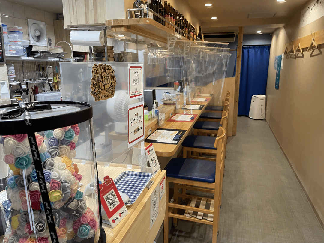 また、カウンターだけでなく小さいお子様も座ることが出来るような、ボックス席もあり比較的ゆとりのある店内になっております!