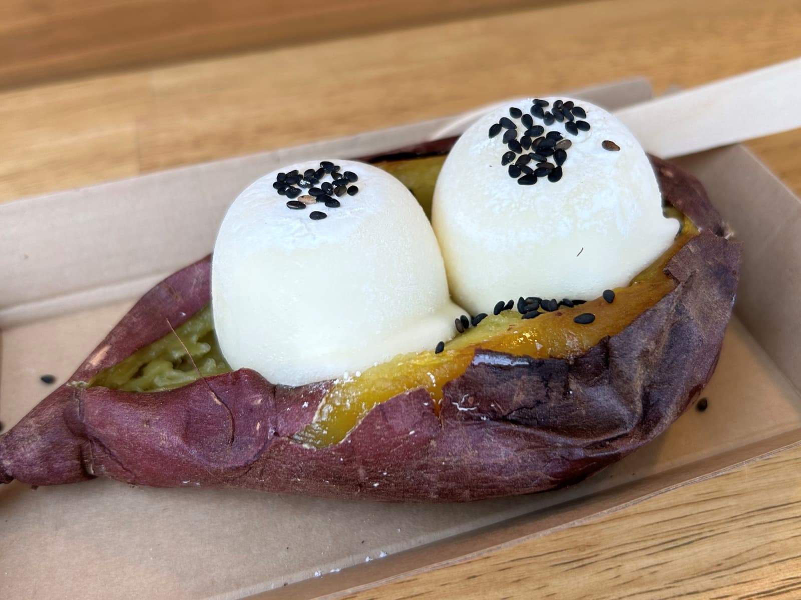 焼き芋の中にたっぷりカスタードクリームが入っていて、表面はパリパリ食感!