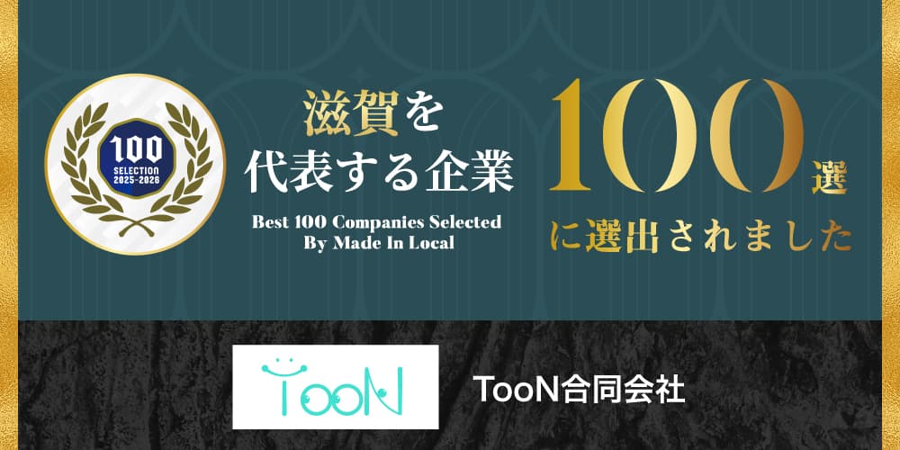 このたびTooN合同会社は、企画から制作までワンストップで提供するアニメーション制作サービスと、地域企業の魅力をわかりやすく伝える独自の表現技術、そして地域のデジタルコンテンツ産業発展への積極的な貢献姿勢が評価され「滋賀を代表する企業100選」にご選出いただきました。