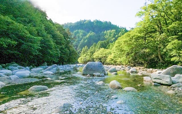 上流には人家が一切ないため、全くの自然が残されています。そのため、渓谷を流れる水が非常にきれいで透き通っています。