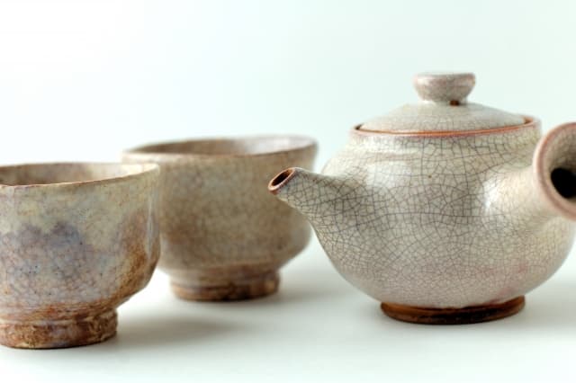 土に独特の吸水性があるため、お茶や料理に使っていくうちに、釉薬(ゆうやく)と呼ばれる、陶磁器の表面に掛かっているガラス質の層の色合いの色合いが少しずつ変化します。