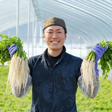 幼少期大嫌いだった農業。ネクタイを締め、やればやった分稼げる営業マンのような仕事に憧れを持つ。しかし、農業こそが手をかけた分かえってくる「自分の天職」だと気付き、2011年に就農。就農当時から、組織化に向けて動き2018年「ふるさと納税起業支援事業(ガバメントクラウドファンディング)」を活用し株式会社として起業。約300年続く秋田県伝統野菜「三関せり」の存続と更なる飛躍を掲げ、現在ハウス22棟で生産。
