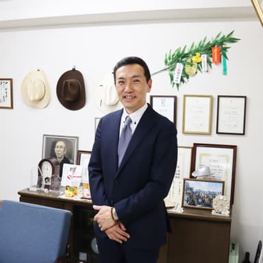 国内の大学を卒業後、アメリカへ留学。留学して2年目の時に起こった阪神・淡路大震災をきっかけに帰国するも、家業である「日本真田帽子株式会社」の本社と自宅が全壊していたため、岡山県倉敷市にある製造工場に泊まり込んで会社の再建に当たった。その後、約20年にわたり様々な業務や役職を経験。2014年に3代目である父親から会社を引継ぎ、4代目として代表取締役に就任。