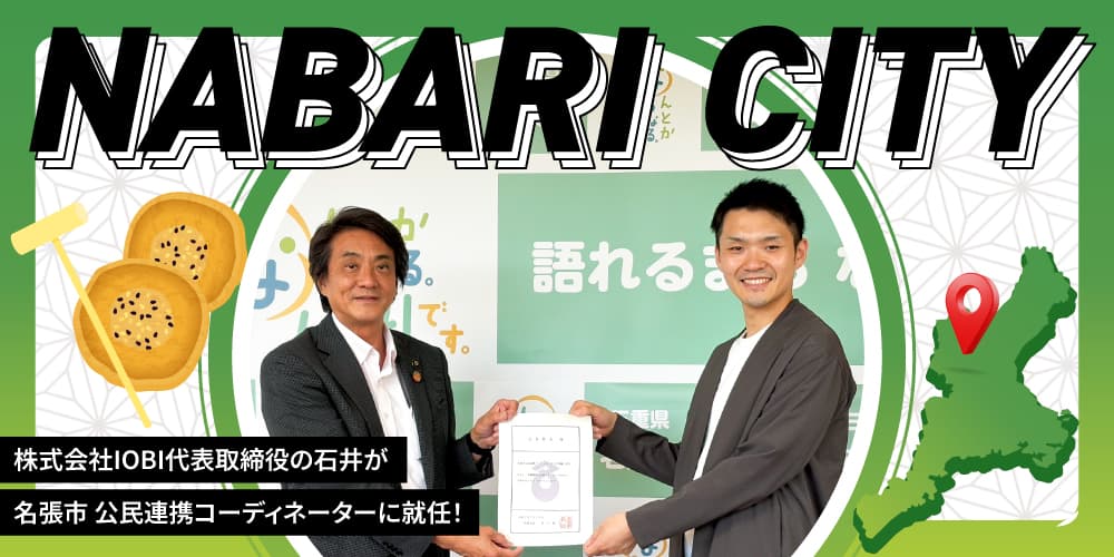 株式会社IOBI代表取締役の石井が、三重県名張市の公民連携コーディネーターに就任したことをお知らせいたします。