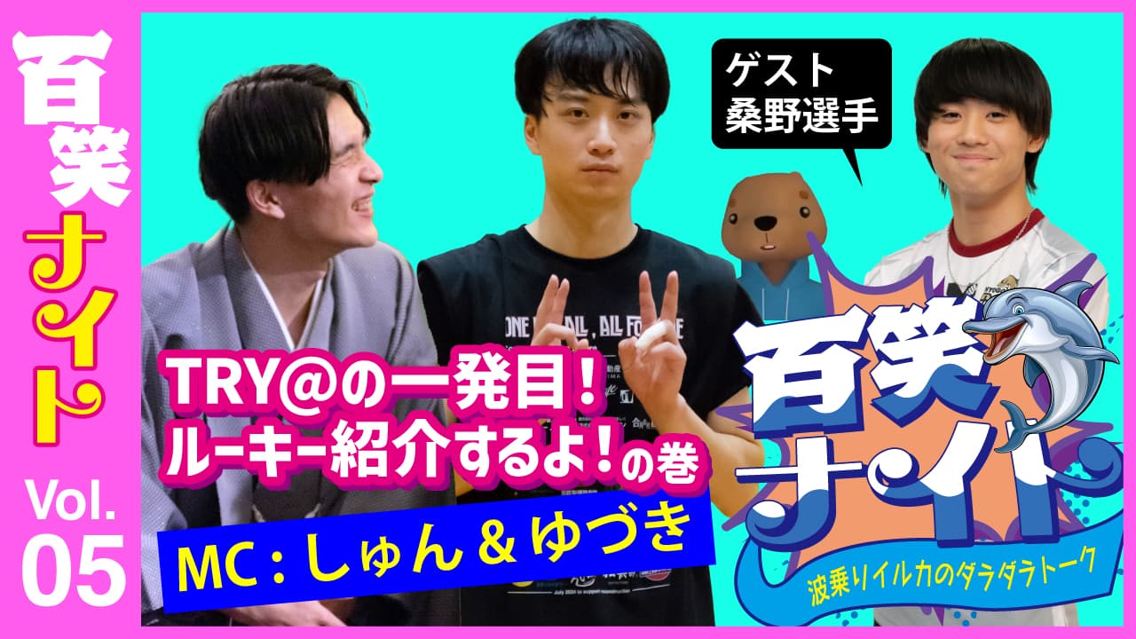 個性あふれるTRY@のメンバーが繰り広げる「百笑ナイト」。彼らのひととなりを知った上で試合の応援に行けばより一層楽しめること間違いなしです!