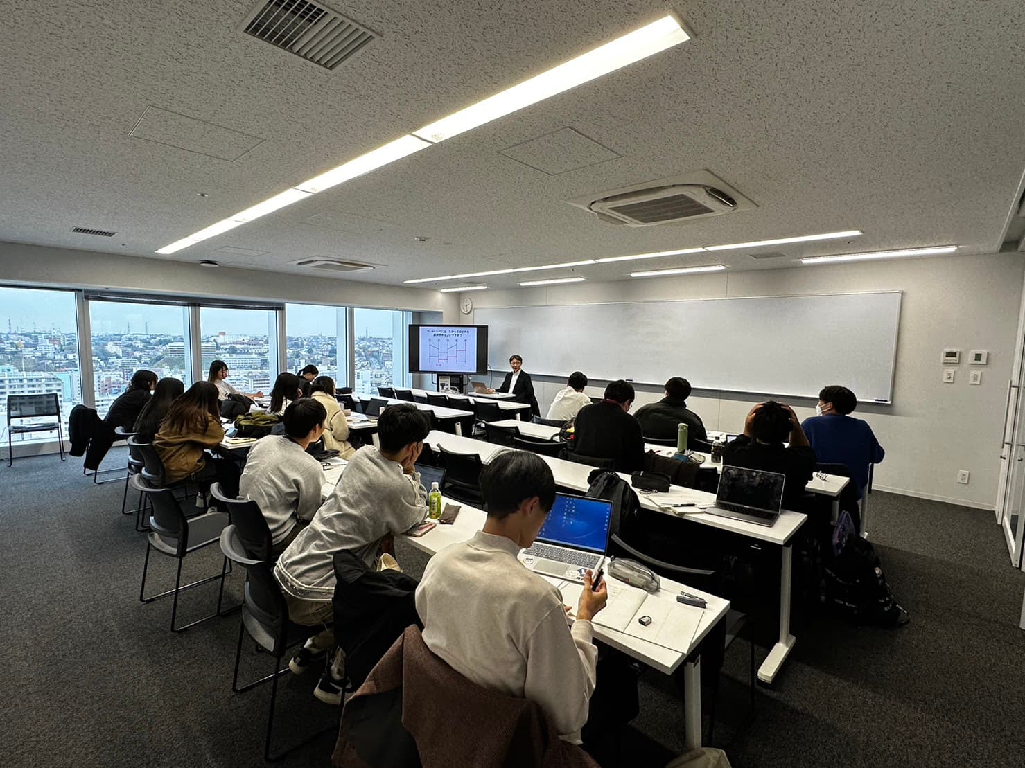 【写真3】ゼミナールの様子。政策づくりの理論や手法を学んでおります。ゼミ生は、教室で学んだ知識を現場に赴いて活用します。学術と実践の融合を図っております。